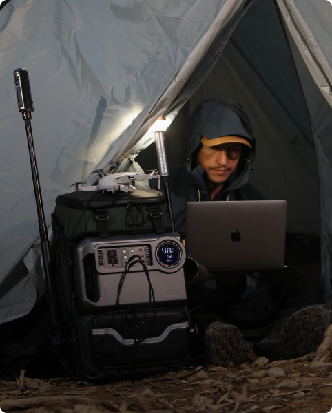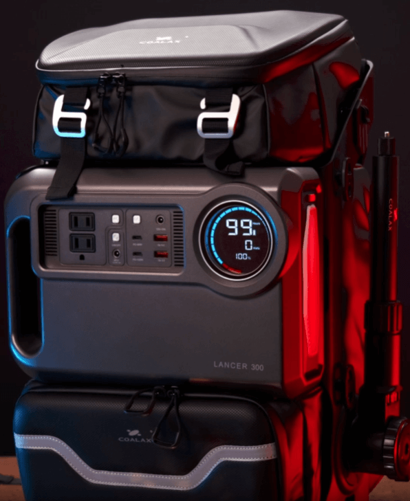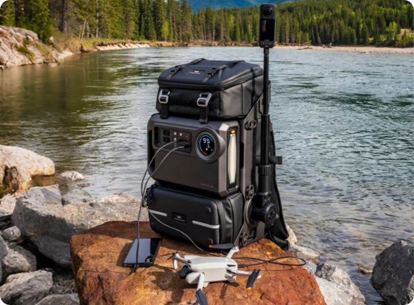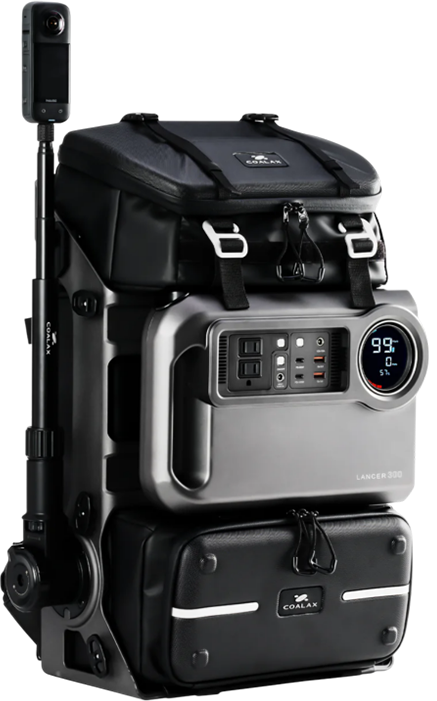 The Coalax backpack integrates a 300Wh high-performance lithium battery module with USB-C, USB-A, and DC output ports, capable of charging multiple devices simultaneously. The swappable design and real-time status screen ensure efficient power management, making it ideal for drones, DSLRs, and mobile devices during extended field sessions.