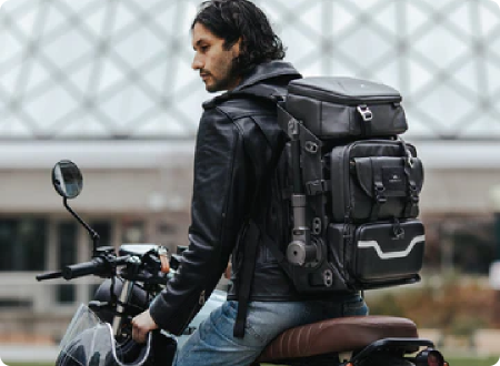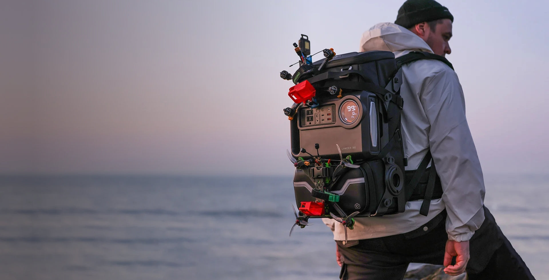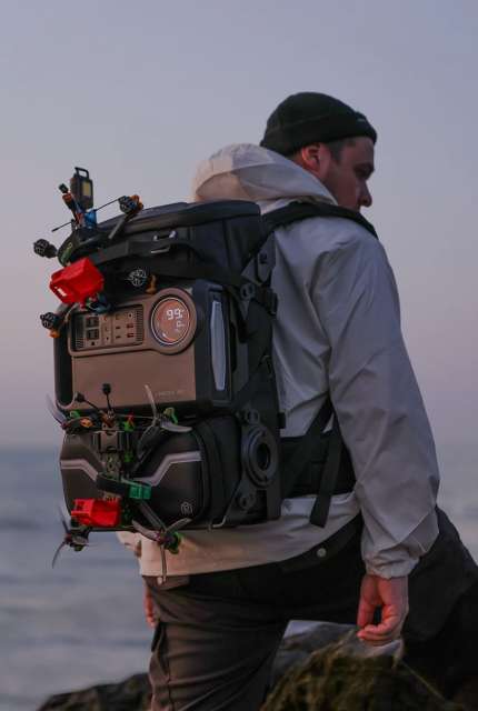 Airline-approved modular backpack with removable 100Wh power supply and gear storage for creators on the go.