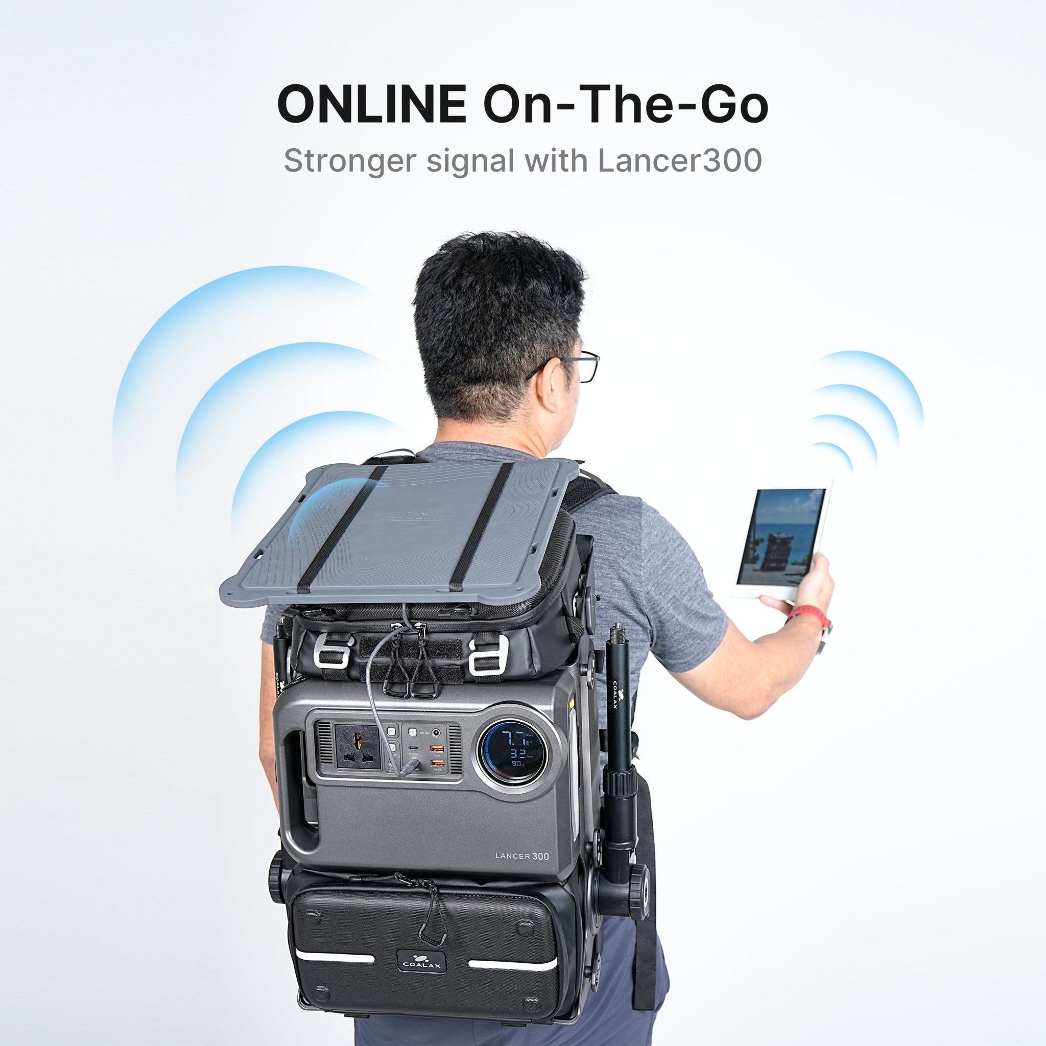 The Lancer 300 Backpack powers Starlink Mini with a 100% carbon fiber pole for rock-solid support. Quick-deploy gimbal arm and kickstand keep you connected anywhere—ideal for field work, streaming, or emergencies.