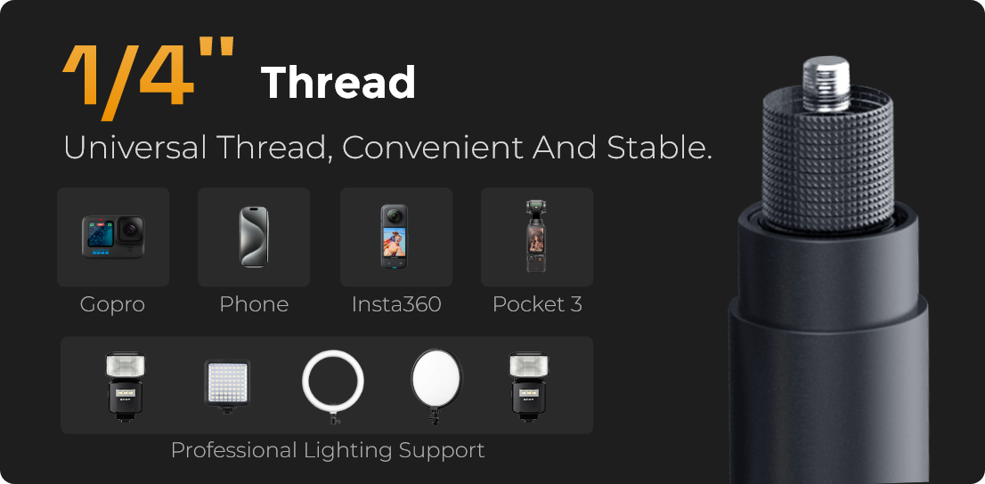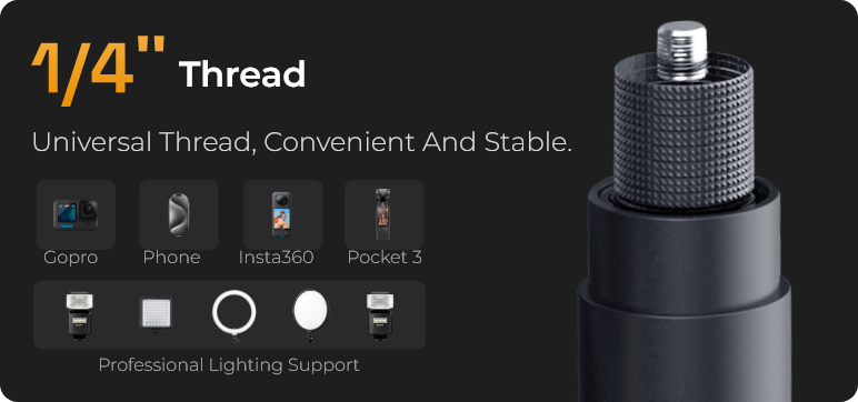 Universal threaded interface, easily compatible with a variety of devices. Installation is convenient, and assembly and disassembly are quick and stable, providing reliable support for your photography accessories.