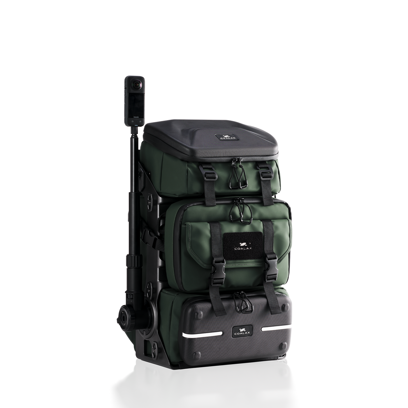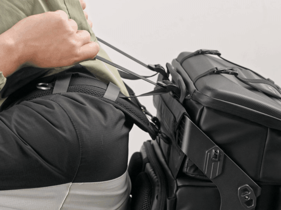The world's first backpack design using an exoskeleton as a load-bearing frame. It enables true modularity for the backpack while providing an additional layer of protection for the equipment stored inside.