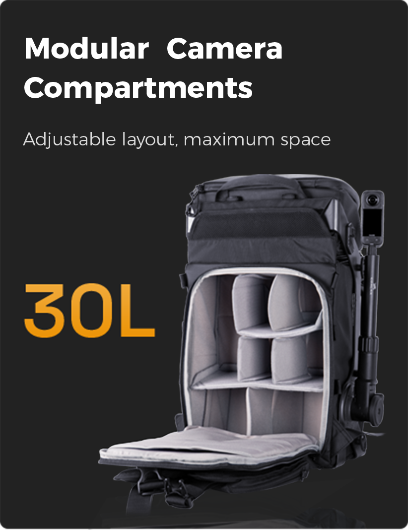 The 35L backpack accommodates cameras, drones, and accessories with ease. Adjustable dividers let you customize the layout, keeping your gear safe and organized wherever you go.