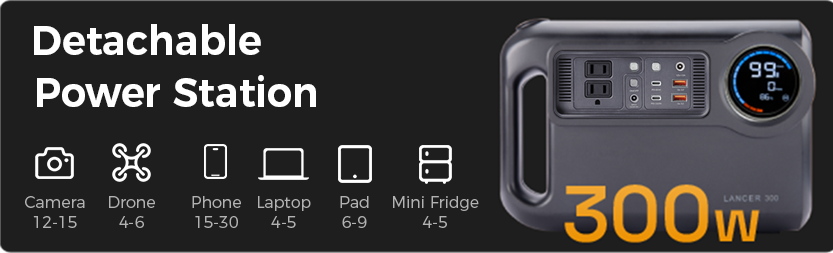 Stable 300W AC output for laptops, cameras, and small appliances.